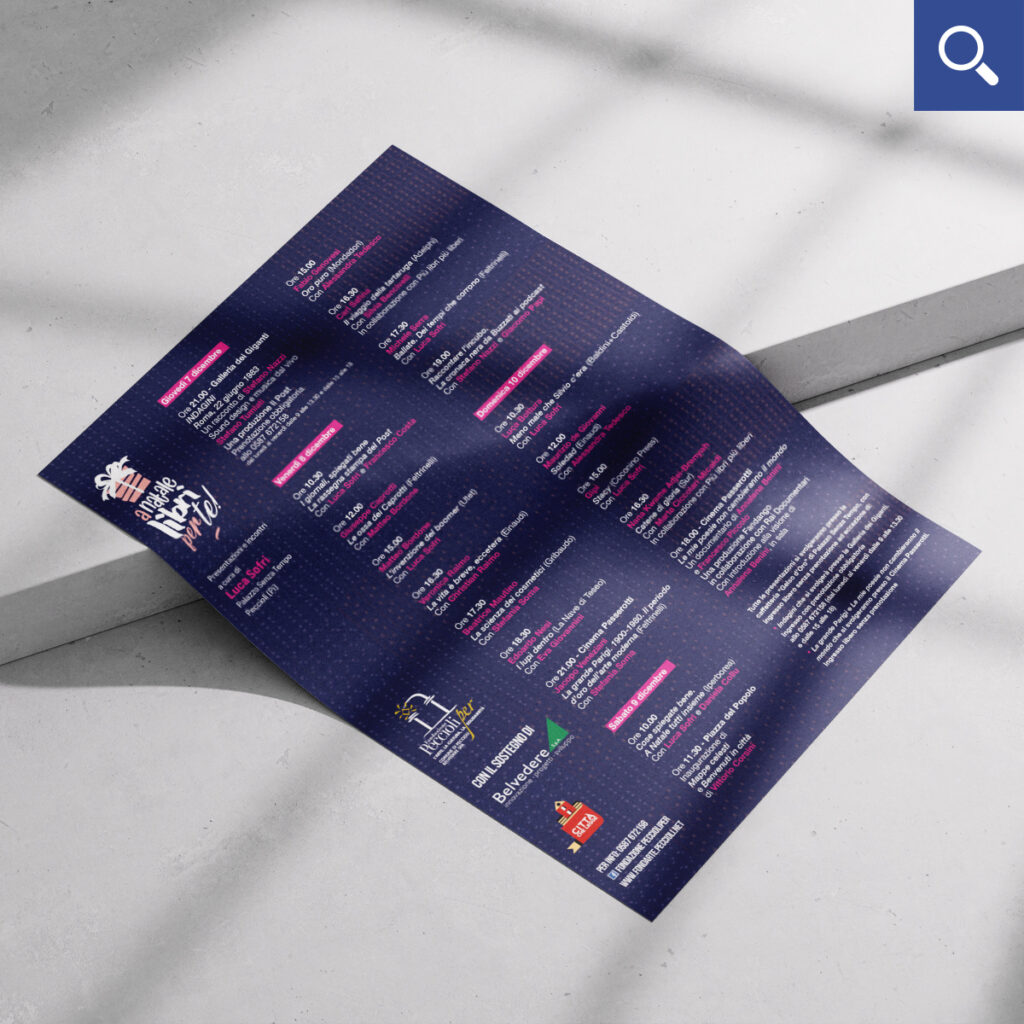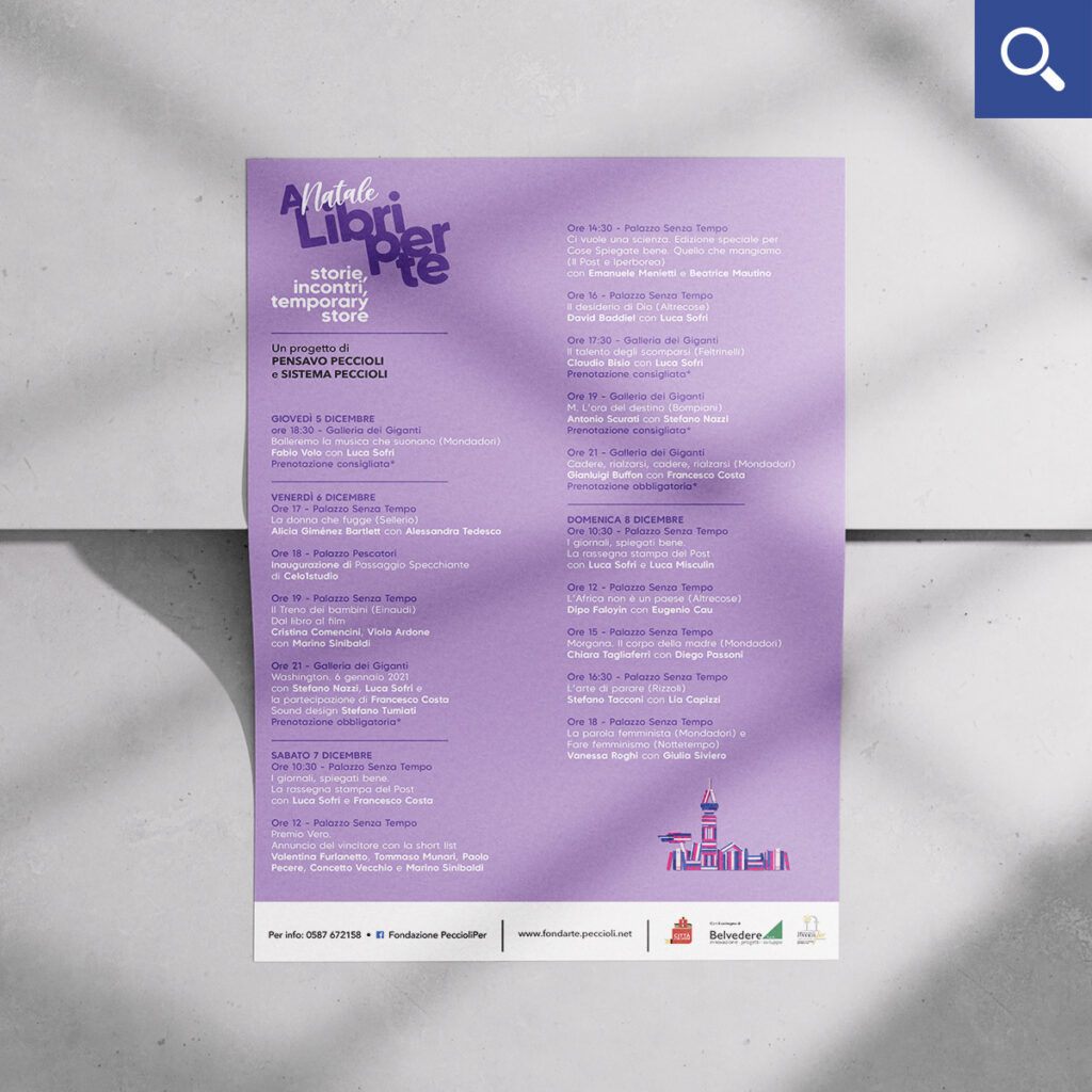 Con il sostegno del Comune di Peccioli e della Fondazione Peccioliper, a cavallo dell’8 dicembre viene allestito un temporary store con librerie del territorio dove poter acquistare libri e dove, dal 2021, hanno luogo anche una serie di presentazioni a cura di Luca Sofri.